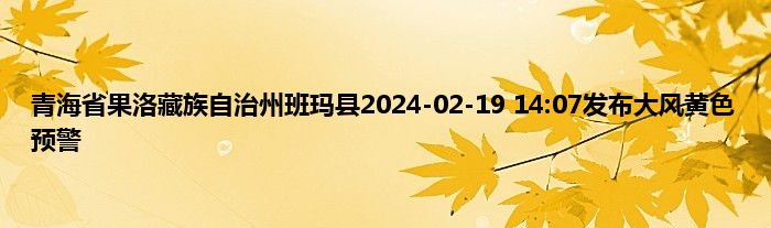大家好,我是天气君。青海省果洛藏族自治州班玛县2024-02-19 14:07发布大风黄色预警很多人还不知道,现在让我们一起来看看吧!