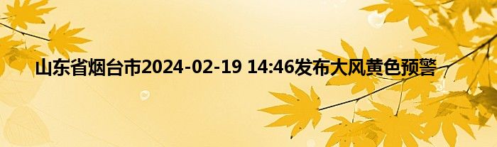 大家好,我是天气君。山东省烟台市2024-02-19 14:46发布大风黄色预警很多人还不知道,现在让我们一起来看看吧!