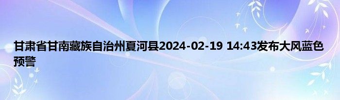 1、夏河县气象台2024年02月19日14时43分发布大风蓝色预警信号。