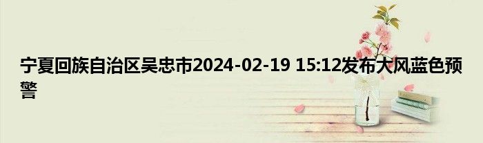 1、吴忠市气象台2024年02月19日15时10分发布大风蓝色预警信号。