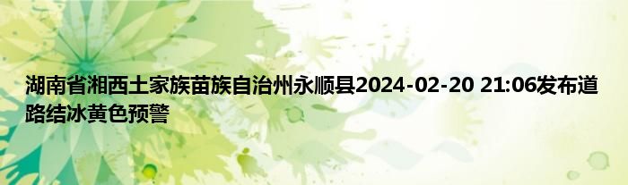 1、永顺县气象台2024年2月20日21时5分发布道路结冰黄色预警信号。